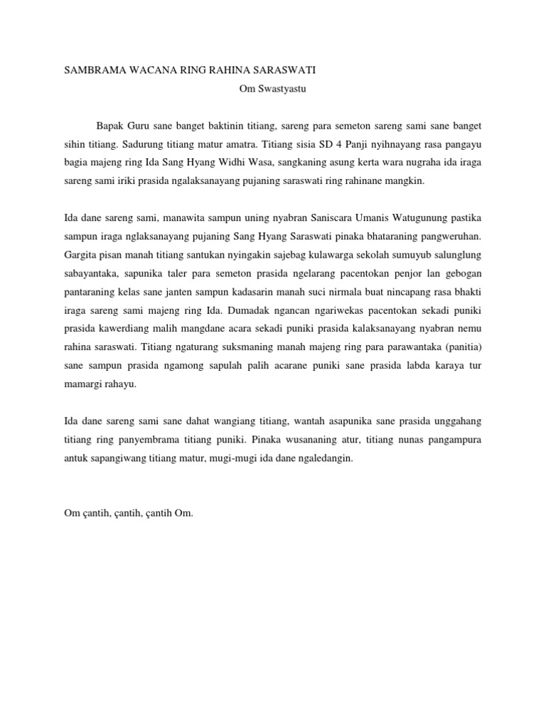 Trending Contoh Sambrama Wacana Singkat Buruk amat perangai si tuan itu! Contoh Sambrama Wacana Singkat : § binan ring dharma wacana, sambrama wacana, lan pidarta.
