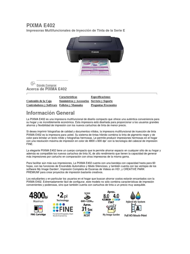 Impresora Canon Pixma E402 - Descargar canon e402 driver impresora y escaner gratis para windows 10, 8.1, 8, 7, vista, xp y mac.