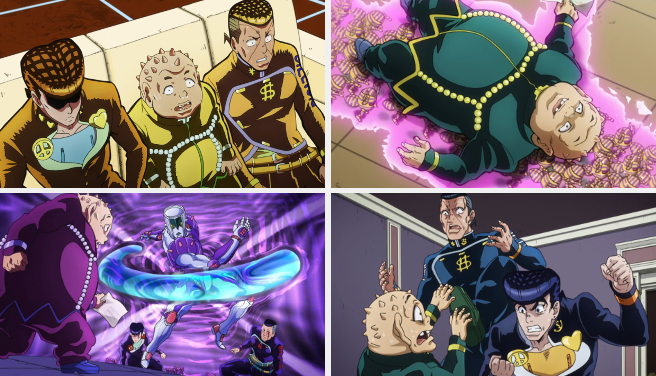 Jojo Diamond Is Unbreakable Episode 18 19 The Glorio Blog - Josuke and okuyasu see strange hornet stands, belonging to shigechi, stealing money from all around morioh.
