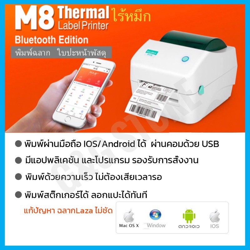 เครื่องพิมพ์ฉลาก soonmark m6/m8 thermal printer สำหรับพิมพ์ใบปะหน้าพัสดุ แก้ปัญหาอักษร ไม่ชัด บน laza/shopee เครื่องพิมพ์ฉลากไร้หมึก จาก soonmark มี 2 รุ่น ให้เลือก m6 :